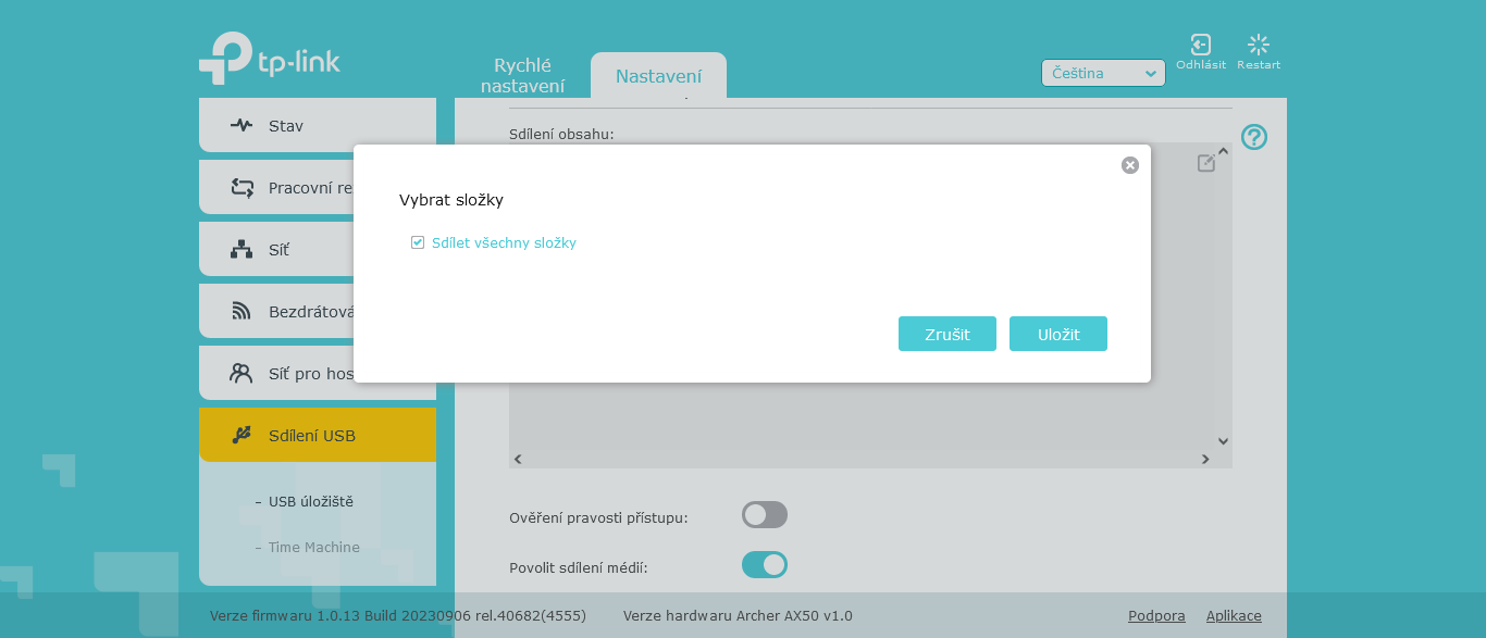 Je vhodnejsi to sdileni medii vypnout, protoze se to pere s overenim pristupu. Vice viz ikona napovedy ve web.rozhrani routeru.