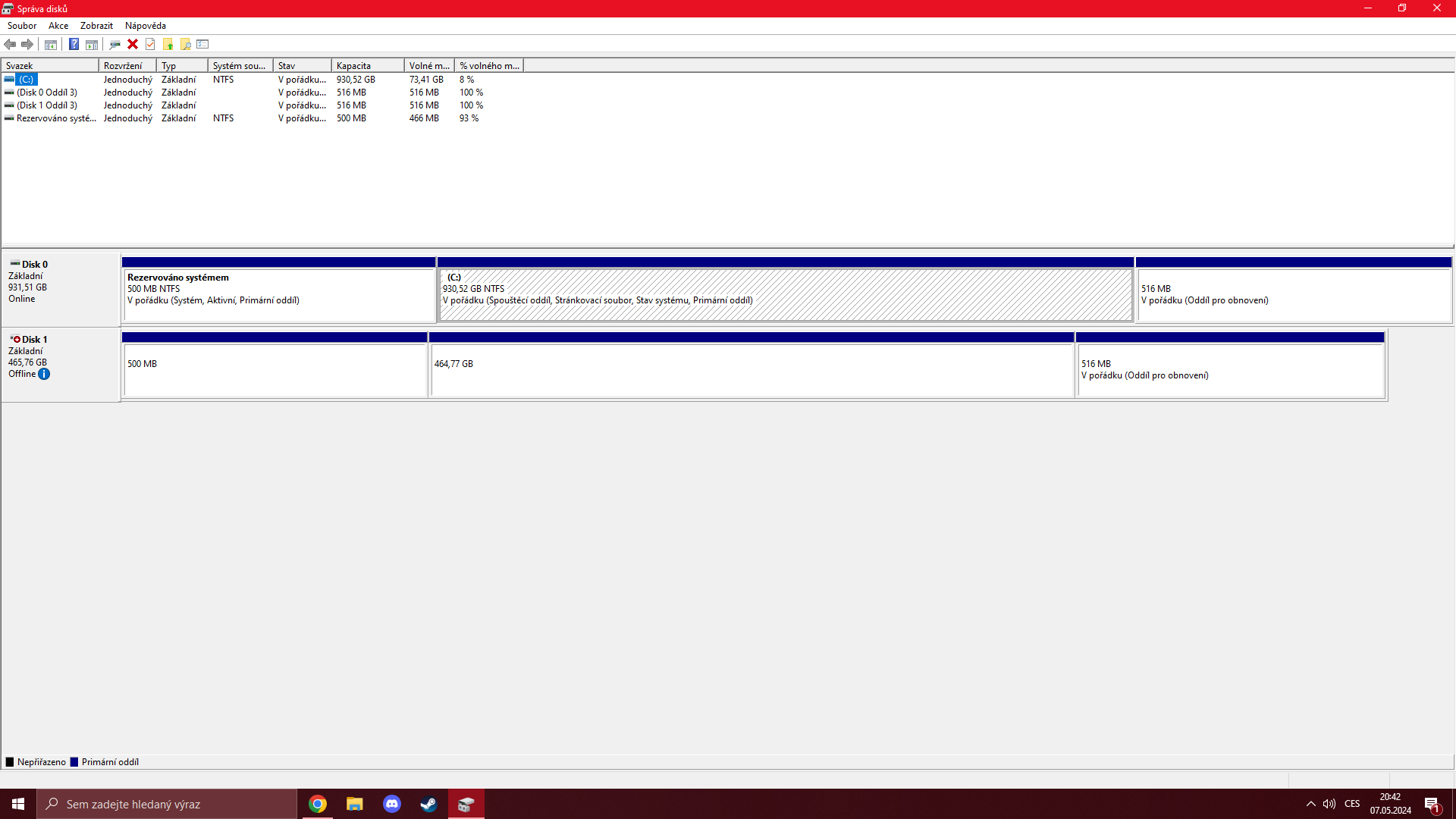 Sekundární disk F už mám nastavený a vše ok, ale podařilo se mi omylem vytvořit "Druhý disk D" na mém HLAVNÍM C: disku