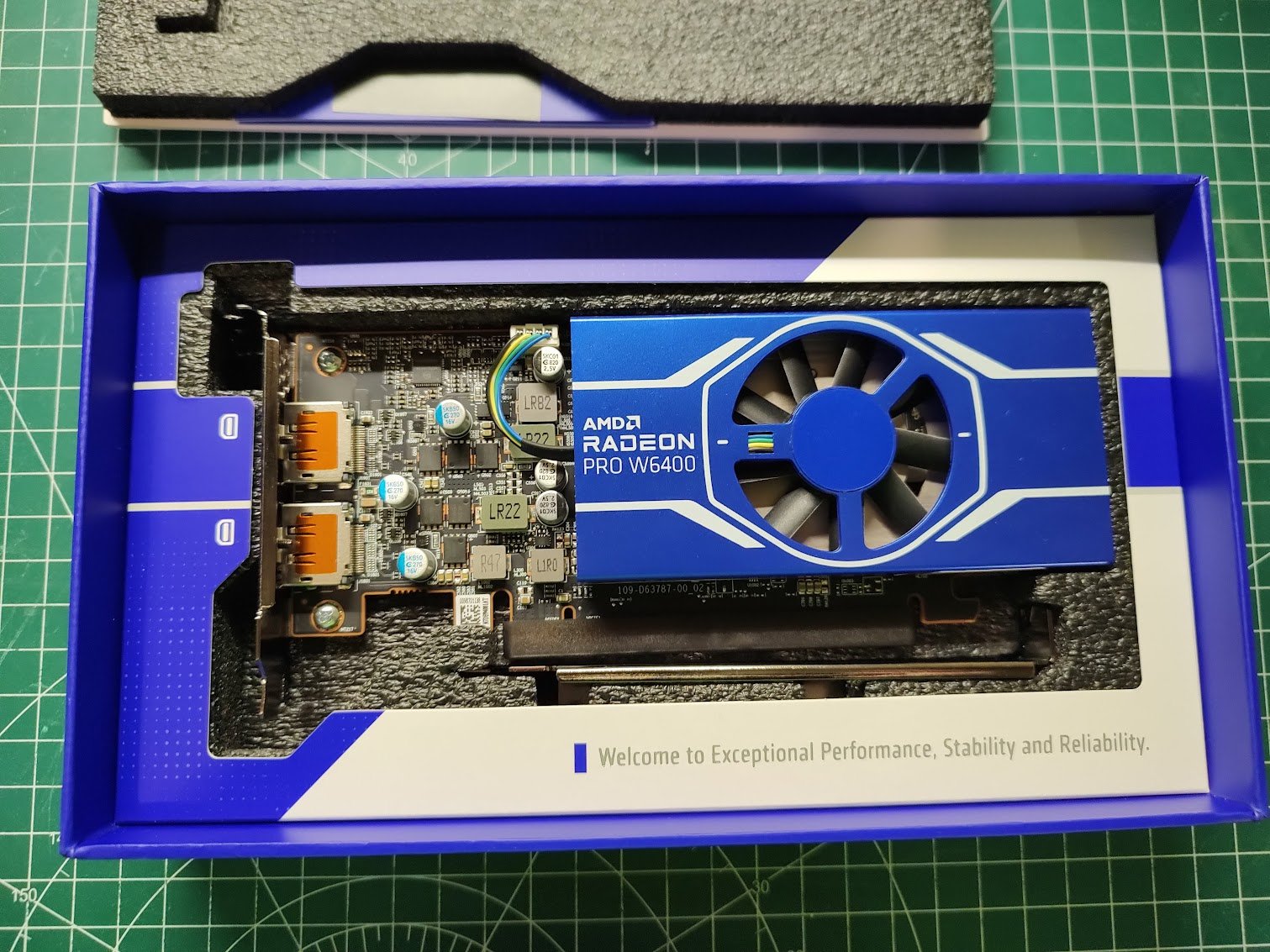 Profi grafika na 2D a 3D CAD a podobné aplikace. Jednoslotové provedení, v balení i kratší plech pro kompaktní skříně. Architektura RDNA 2, 768 stream procesorů, 4 GB GDDR6, PCI Express 4.0, dekodér H264, H265∕HEVC. Podrobné info zde. Datasheet zde.
