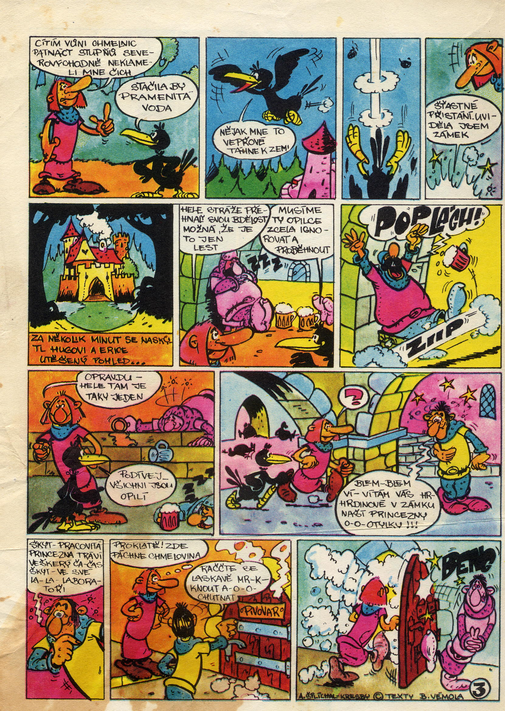 Žánr:komediální fantasy Původ:ČSSR Vydáno: CICERO - magazín Ostravského kulturního zpravodaje č. 0 / 1971 Počet stran:24 Grafika: barevná Původní cena: Scénář: Bucher Kresba: Vémola Překlad: