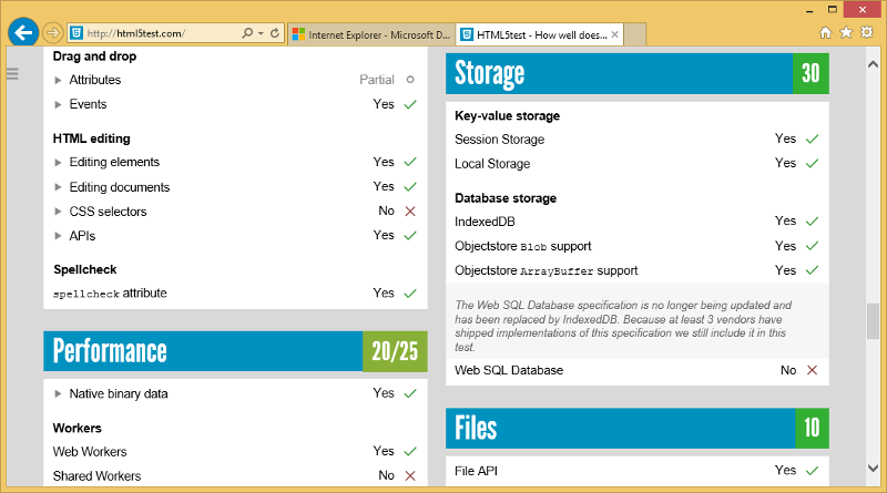 FullScreen API, Gamepad API a PointerLock API v současnosti z třech nejrozšířenějších prohlížečů podporují Google Chrome a Mozilla Firefox. Třetí do party, tedy Internet Explorer, zatím podporuje jen FullScreen API. Podpora Gamepad API a PointerLock API je však v plánu. Microsoft stejně jako Google a Mozilla vidí ve webových hrách velký potenciál, ale Internet Explorer má delší vývojový cyklus než jeho dva rivalové. To jsme si vysvětlili v první části článku.