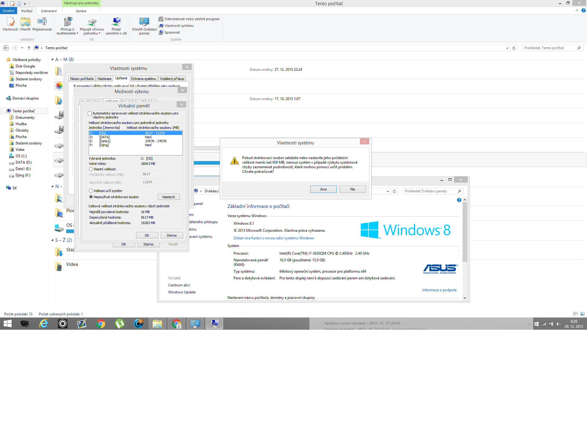 Muzes nastavit 8192 MB na disku C: a 16384 MB na tom dalsim disku.