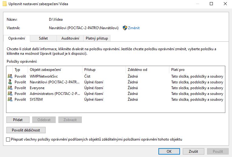 ano ty soubory jsou uplne stejne jako ty co jsou v PC. Opravneni na sdileni by melo byt shodne. Prikladam obrazky nastaveni ze stolniho PC. Nastaveni v NTB je uplne stejne, jako je na obrazcich. Je ale mozne, ze je tam nekde chyba. TV je umistena v obyvaku a PC je nahore a k TV zadny kabel nevede, musi byt tedy pripojena k Wi-Fi.