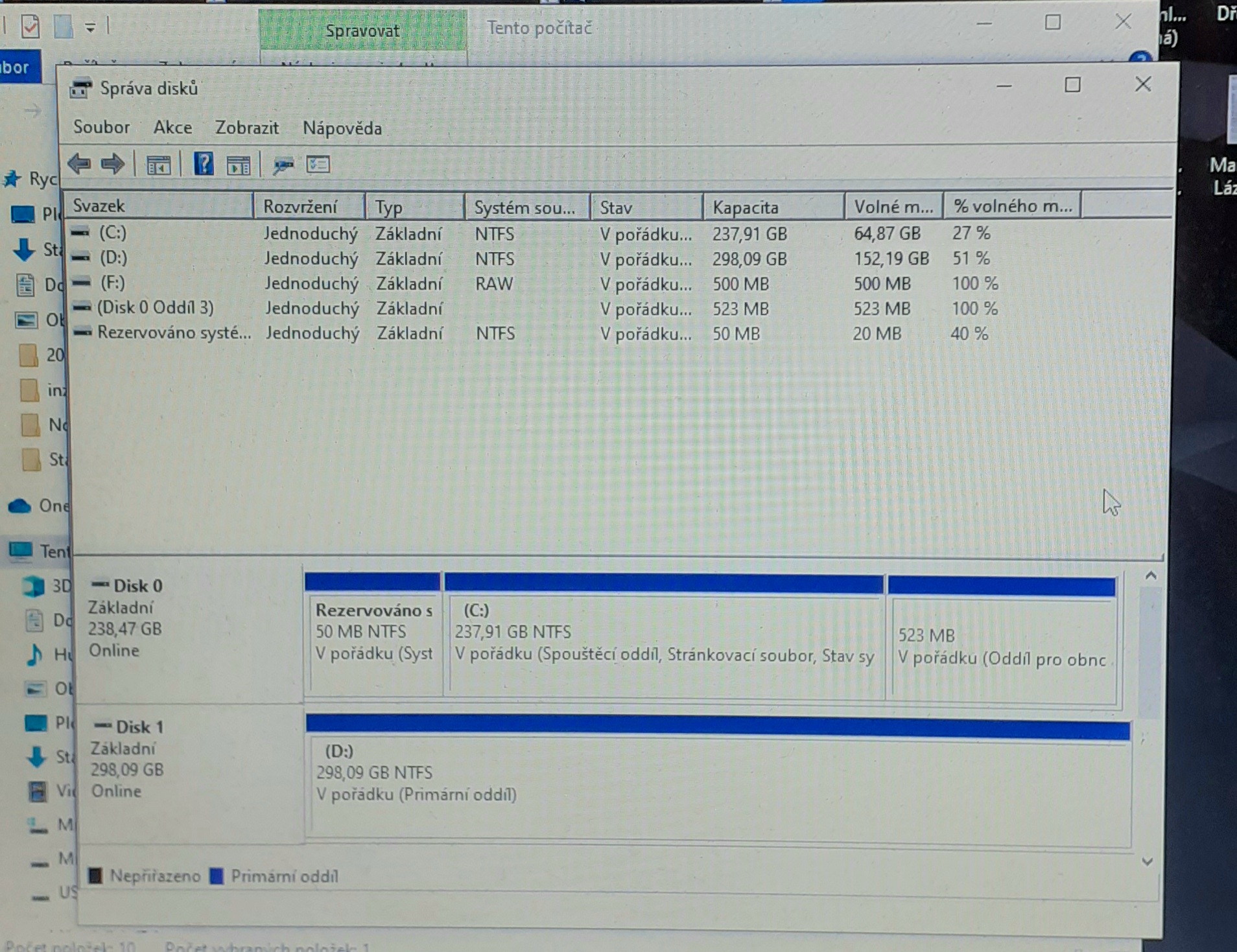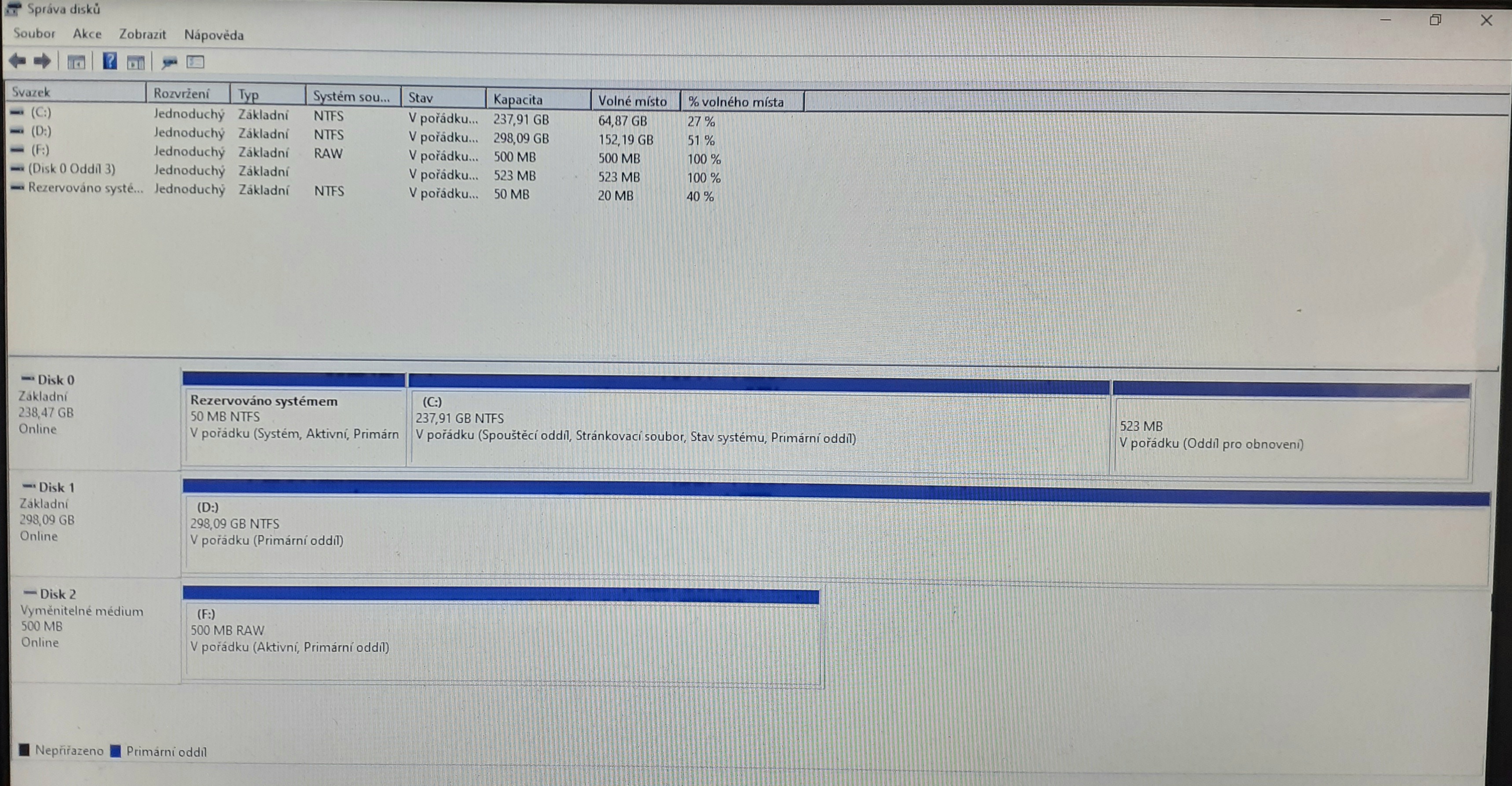 ve správě disků se zobrazuje normálně, jako disk:F , zkoušel jsem ho i přejmenovat na jiné písmeno, ale beze změny...
