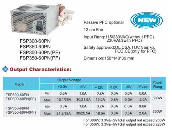 Jakožto příklad důležitosti maximálních proudů poskytovaných na jednotlivých větvích jsem vybral zdroj Fortron FSP300-60PN(PF):