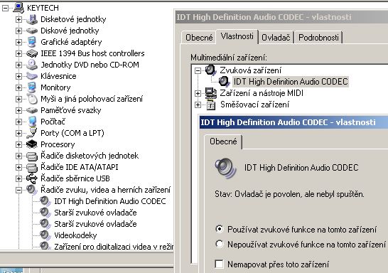 Ahoj všichni. Mám to!!!!!!!!!!!!!!!! Nějakým zázračným způsobem se to dnes objevilo jako skrytá položka - Zřejmě nějaká pozdní reakce počítače na radu od Myloše. Tak jsem to odinstalovala, restartovala počítač a světe div se, spustilo se to - samo :crazy: (značka repráku vedle názvu ve správci ztmav...