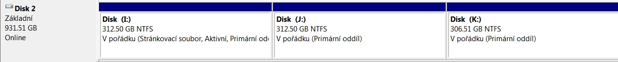Přiřaď ve Správci disků písmena jednotlivým oddílům a diskům (PTM na jednotku).