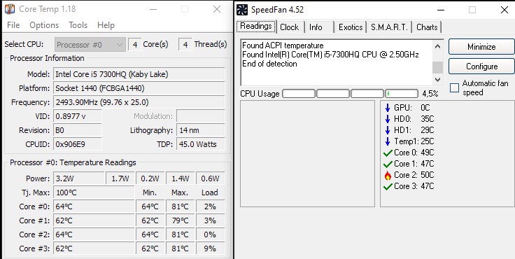 Zdá se mi, že po přepastování a vyčištění je to lepší. Sice se po nějaké době kdy běží plynuje, sekne a mírně laguje, ale mám pocit, že už to není tak hrozný. I teploty jsou příjatelný. Při zátěži: