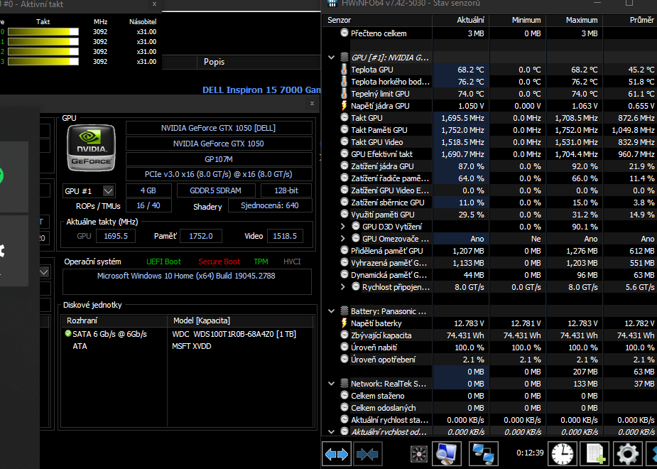 Je to celkem dost. Po deseti minutách to vystřelí přes 76. GPU jsem samo přepastoval taky teda, ale tam to moc nepomohlo evidentně. Ovladače se mi pravidelně aktualizují přes GF Experience.