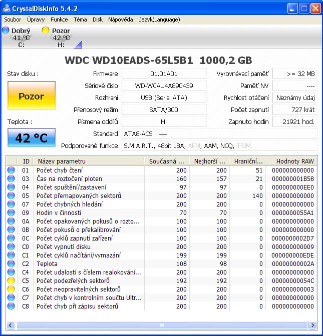 A pak ještě CrystalDiskInfo - jestli tam ten disk bude, tak udělej z toho programu screen a ten sem vlož.