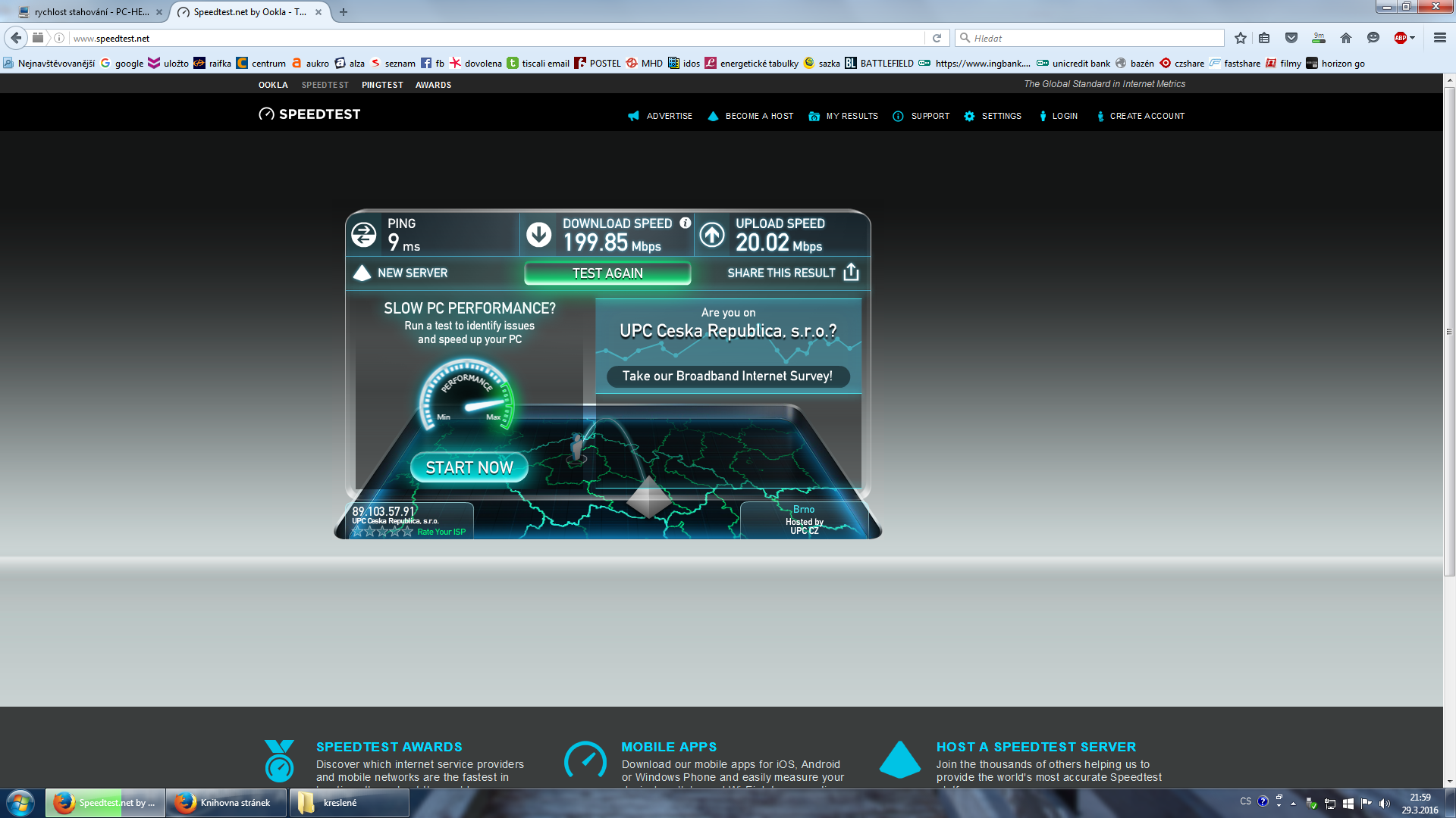 dobrý den chci se zeptat mám 200mb/s internet od upc ale když si neco stahuji tak max 3mg za sekundu ale bývalo mnohem víc tak před rokem jsem stahoval třeba 15 prostě pod 5 mi to nešlo při jednom souboru i tak to je dobrý vím ale nevím jestli nemám nějaké omezení v počítači nebo všechny servry naje...