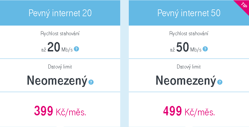 Do teď jsem měl wifi a ne že by to bylo nestabilní, ping se držel okolo 50, ale hrozně citlivé, jak na počasí, tak počet připojených lidí atd.. Dodatečně přidáno po 4 minutách 9 vteřinách: V rychlosti jsem mrknul na T-Mobile nabídku a na naší adrese je dostupný : Pevný internet, Rychlost stahování A...