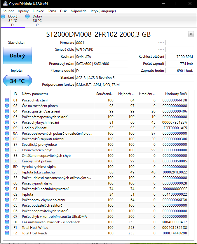 Ano, vím že časem se snižuje životnost, jen jsem si nemyslel, že po roce a půl už je na 96%, ikdyž vlastně po takové době je to celkem v poho. Nicméně to neřeší můj problém s hdd. Nevím nevím co s tím už.