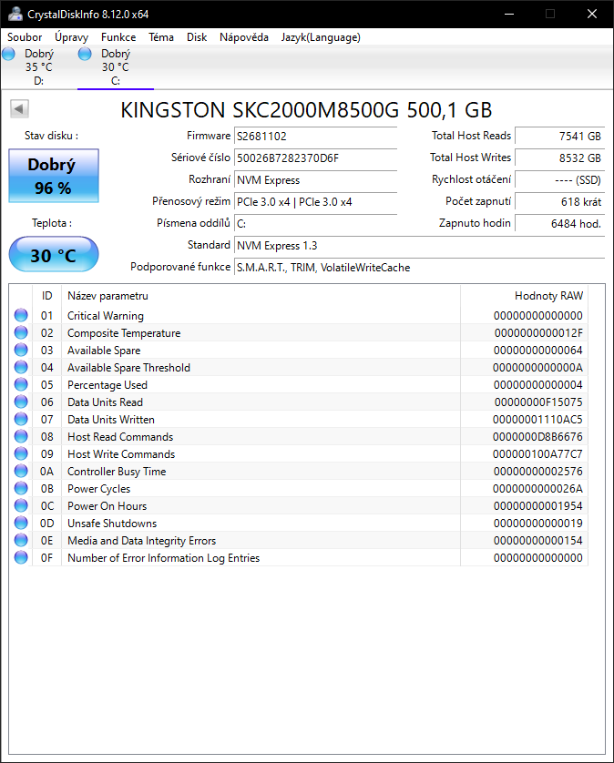 Zajímavý, že u stavu ssd mám jen 96% :)
