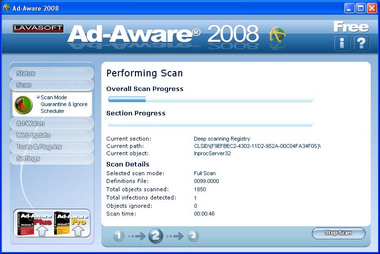 Prosím o pomoc, Ad-Aware2008 mi při kontrole opakovaně zůstalo stát na nějakém registru viz. obr.