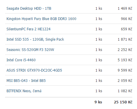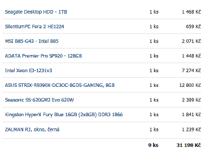 Odkaz na sestavu s aktuální cenou: http://www.czc.cz/ahlr1hlndkgi9bv2fu1tooodh8/seznam