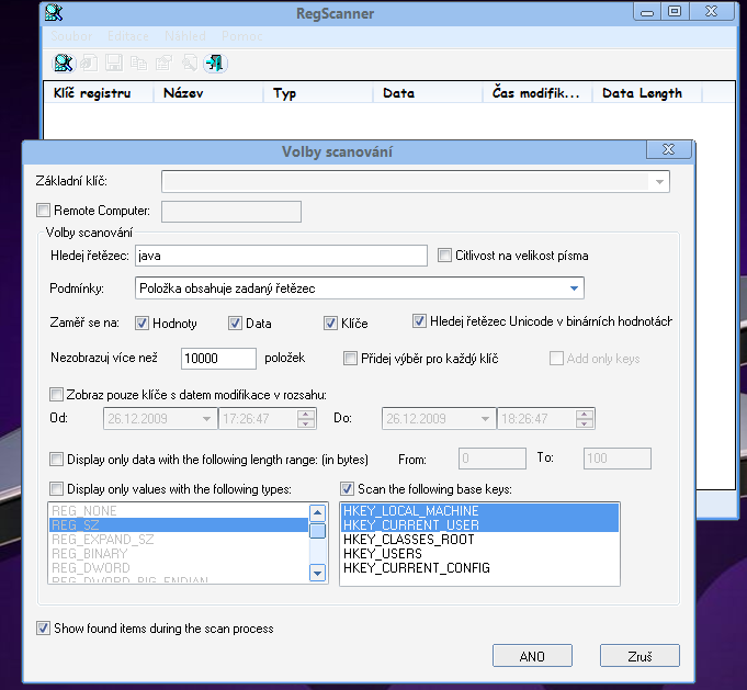 Nastavení programu