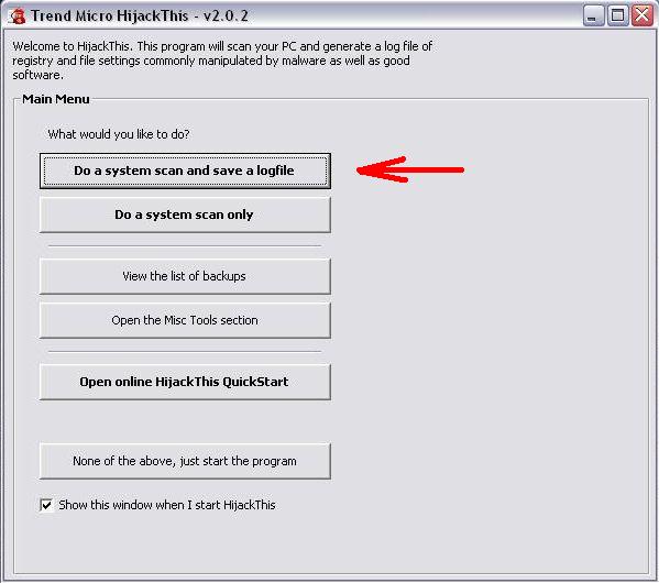 Ad 4) - Ve spuštěném okně programu klikneme na lištu Do a system scan and save a logfile a počkáme