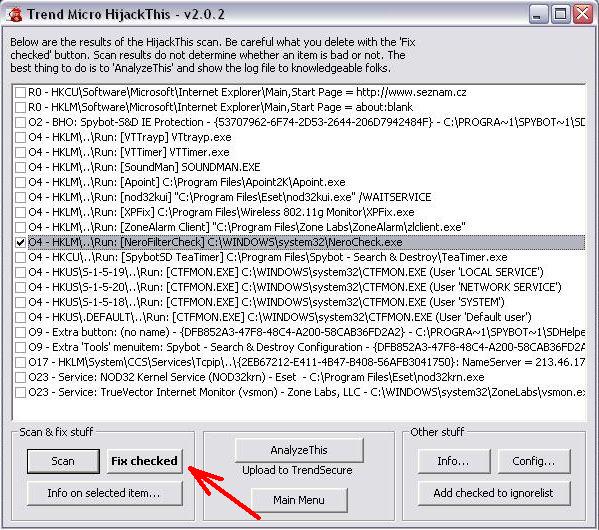 Ad 1) - Aktuální verze programu HijackThis stáhneme zde.