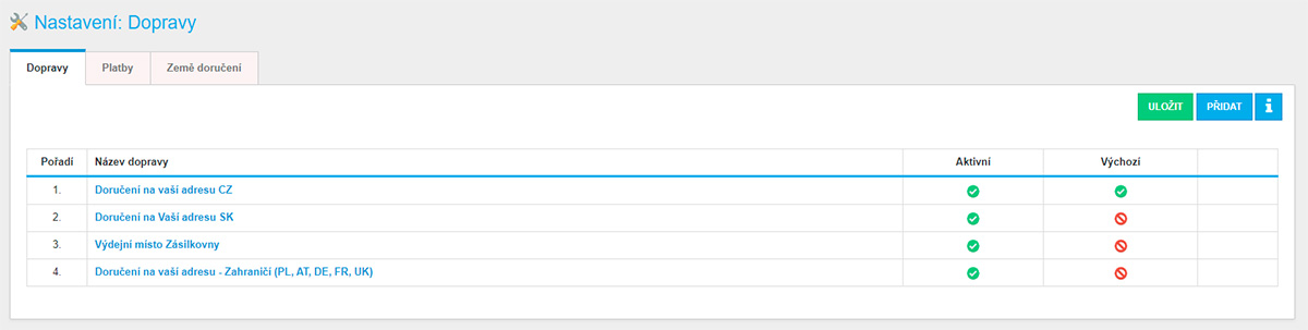 - U dopravy a plateb lze jednoduše nastavit cenu podle měny a státu.