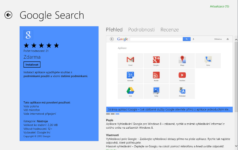 Google hájí pozice, do Windows Store uvedl aplikaci Google Search