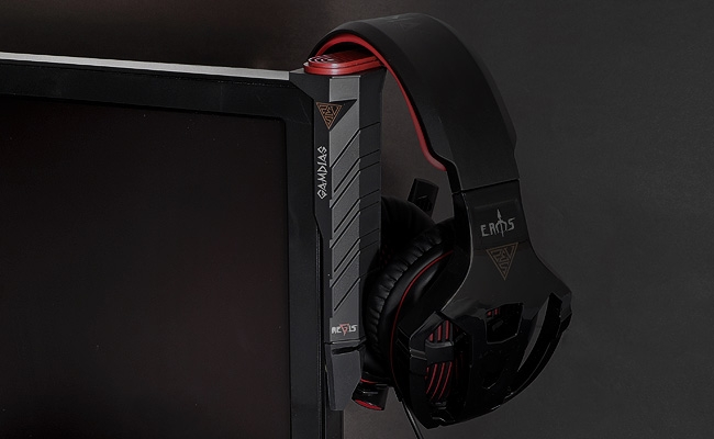 Ke sluchátkům lze doporučit samostatně prodávaný doplněk Gamdias Aegis, což je v první řadě věšák na sluchátka, který se připevňuje k monitoru. Kromě sluchátek značky Gamdias jej lze použít pro sluchátka jakékoliv další značky. Věšák se připevňuje na pravý horní roh plochého monitoru. Zapře se za vrchní stranu a přilepí se k boční straně. Aby dobře držel, potřebuje co možná nejrovnější pravou postranní hranu monitoru.