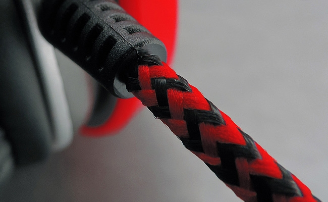 Třímetrový propojovací kabel s pozlaceným konektorem umožňuje dostatečnou volnost pohybu, takže není třeba láteřit nad tím, že nejde o bezdrátová sluchátka. To je v tomto případě spíše výhoda, protože se sluchátka nemusí pravidelně dobíjet po každých pár hodinách hraní. Kabel je luxusně opletený, což jej chrání před fyzickým poškozením. Zároveň se díky opletení méně kroutí, takže nelze říci, že by jakkoliv překážel.