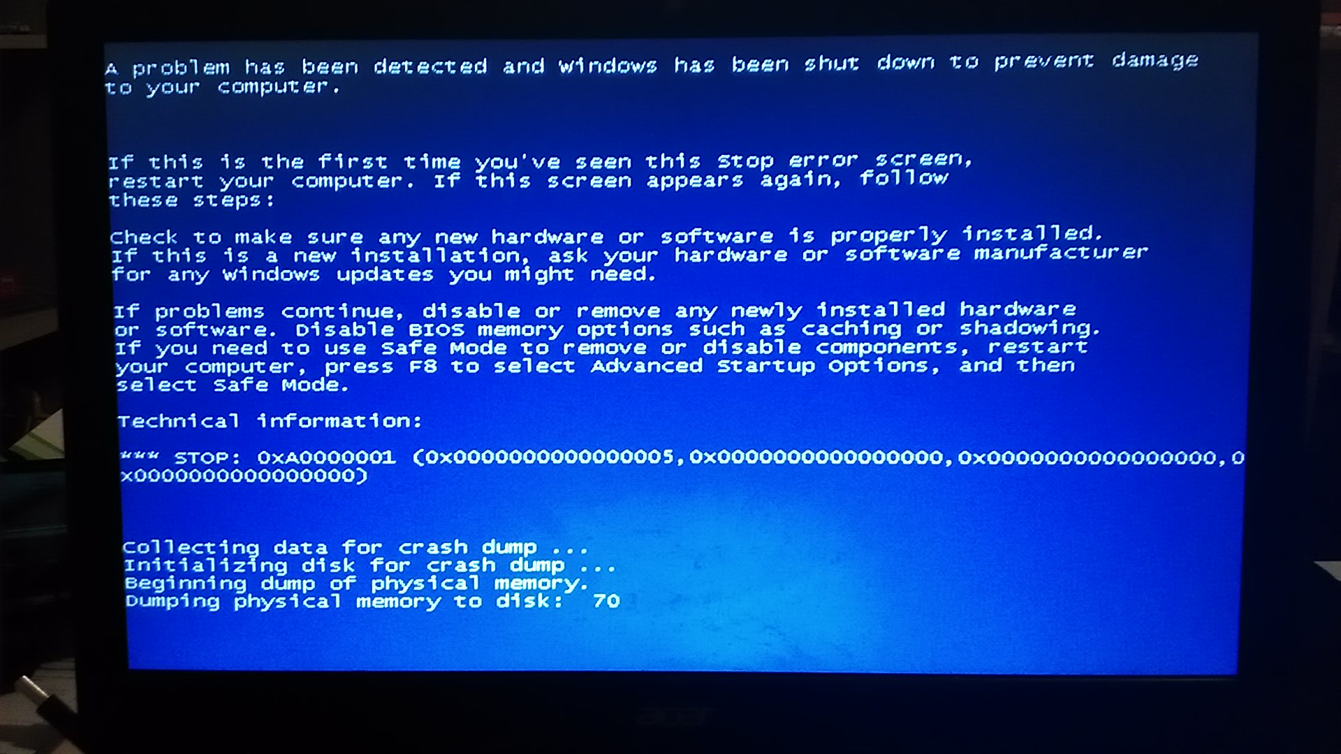 Poté co notebook znovu zapl, tak se mu po cca. 30 minutách BSOD zobrazil znova.