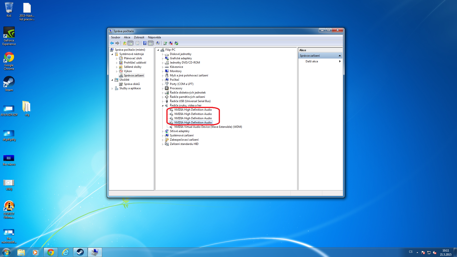Přeložil jsem si to a nevím, jak tohle udělat "Zakázat zvukový řadič spojený s HDMI kartou uvnitř Správci zařízení" žádné HDMI tu nemám ..