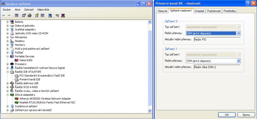 Tak jsem na to zkusil kouknout (nic jsem zatím neměnil ani nepřenastavoval, pouze jsem si zobrazil ta okna ze správce zařízení) a zjistil tohle - viz screen.