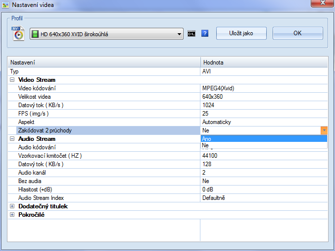 Divím se ,že tu obrazovku nepoznáváš.Je z format factory.Co si projít nastavení programu?Je to v záložce rom zařízení....A v nastavení pro avi můžeš třeba kodovat na dva průchody atd.