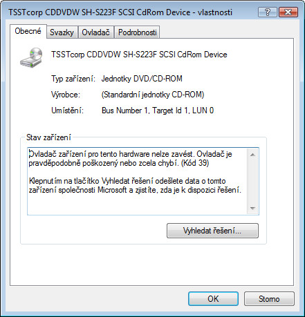 Tak ještě že jsem nešel k popelnici...proty,co mají podobný problém...pomohlo toto...a maká to dál...http://support.microsoft.com/mats/cd_dvd_drive_problems