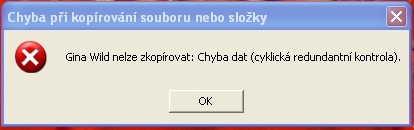 Ahoj, nedávno sem si vypálil na RWéčko jeden film má 698MB takže normální velikost, jenže když se mi uvolnilo místo v počítači a chtěl sem ten film nahrát zpět do PC abych to RW mohl dál používat nešlo to, těsně před koncem kopírování vyskočí okno s hláškou Nelze zkopírovat: Chyba dat (cyklická redundantní kontrola). Nevíte někdo jak to vyřešit, třeba existuje nějakej program kterej to dokáže zkopírovat nebo opravit. díky za rady.