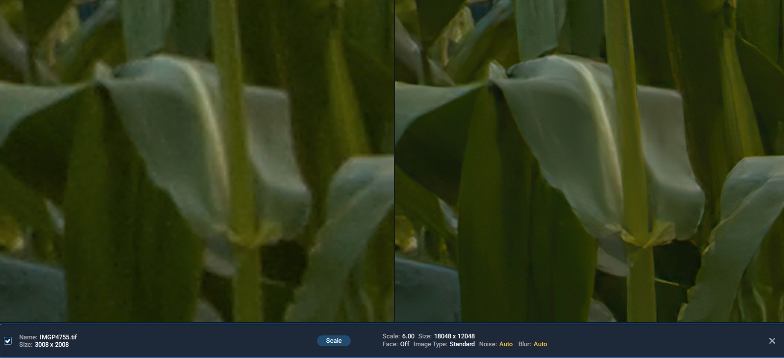 Níže máš šestinásobné zvětšení části fotky, program pro video umí podobně kouzlit a je to použitelné. Ale samozřejmě souhlasím s tím že originál ve 4K je lepší. Strojový čas s AI bych věnoval něčemu co HD nebude, jako stargate a nebo Akta X.
