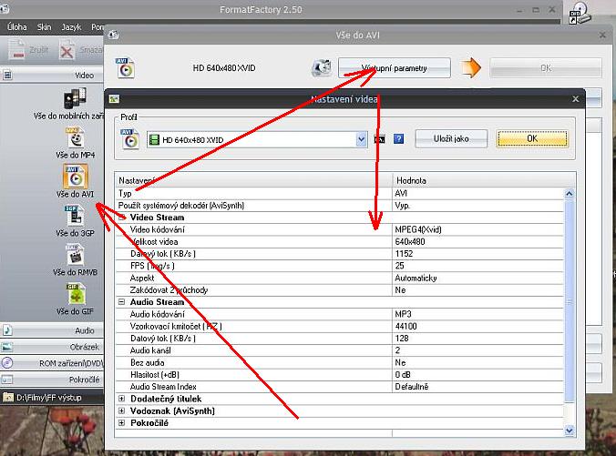 Např. FormatFactory nabídne uložit vše do AVI, nicméně výstupní parametry musím vybrat.