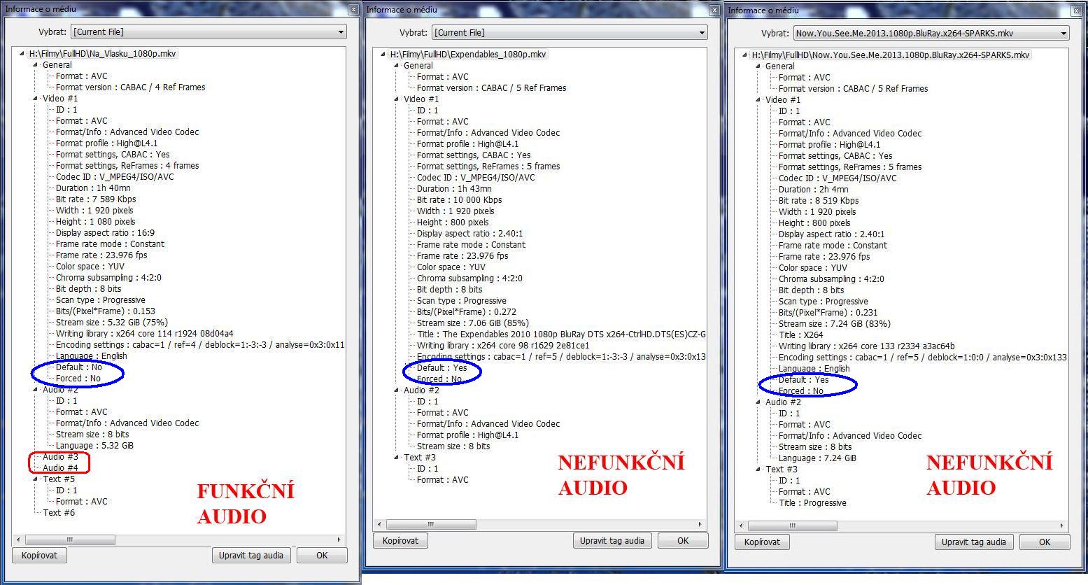 Co to znamená chápu, ale nevím o který kodek jde. Nedokážu v přiloženém obrázku najít rozdíl, který nefunkčnost audia způsobuje.