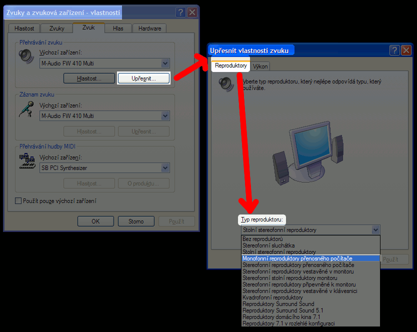 Jak nastavit VLC pro přehrávání na jednu reprobednu? *