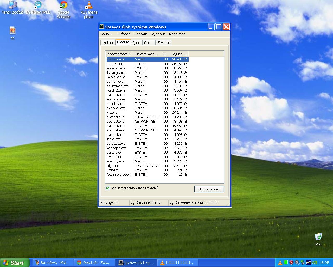Na pc Help řeším přroblem pomužete mi i vy děkuji. Nainstaloval jsem na počítač novej Windows xp profesional. Stáhl jsem bs plaer ale videa se sekali a vitížení pc bylo 100%.Tak jsem ho odinstaloval a stáhl vlc plaer videa se sekali a vitížení také 100%. Poradte co stým ? Přehrávače jsem stahoval z originál stránek.