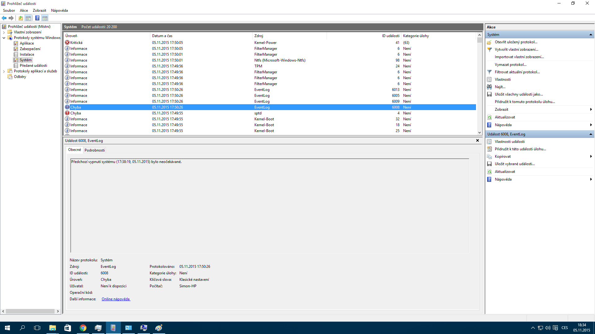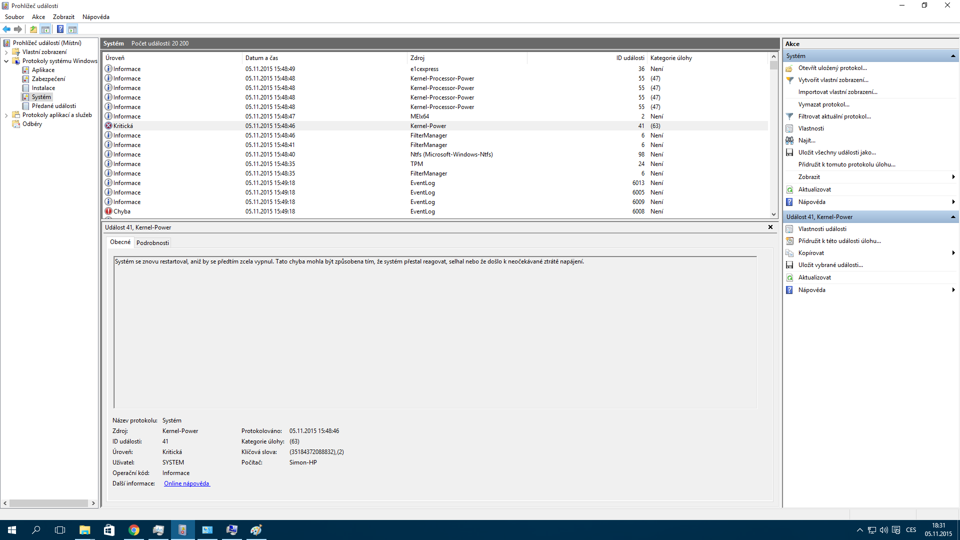 Přikládám fotky + výpisy z Prohlížeče událostí