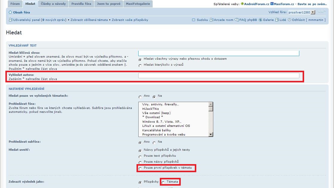 Někdy se mi prostě stalo, že jsem potřeboval najít něco v mém tématu (které jsem např před rokem zakládal) a když už jsi nepamatuji nadpis tématu, nebo nějaké slovo, tak je to těžký...Vím, že kdybych dal "Zobrazit vaše příspěvky" tak bych se mohl dopátrat, ale trvalo by to dlouho...