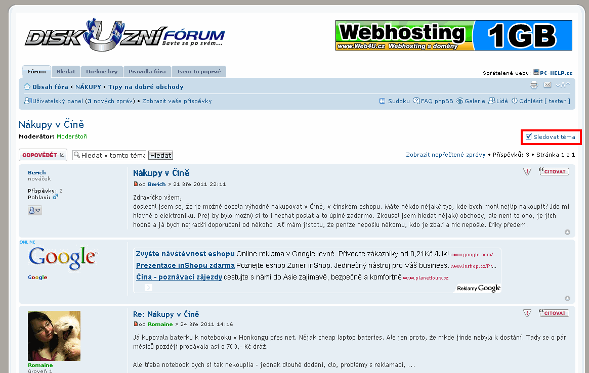 Odkaz na "sledovat téma" a "sledovat fórum" jsem nakonec umístnil do pravého horního rohu. Tak nějak mi připadá, že se to tam hodí nejvíce. Pokud byste měli připomínky či komentáře, pište prosím.
