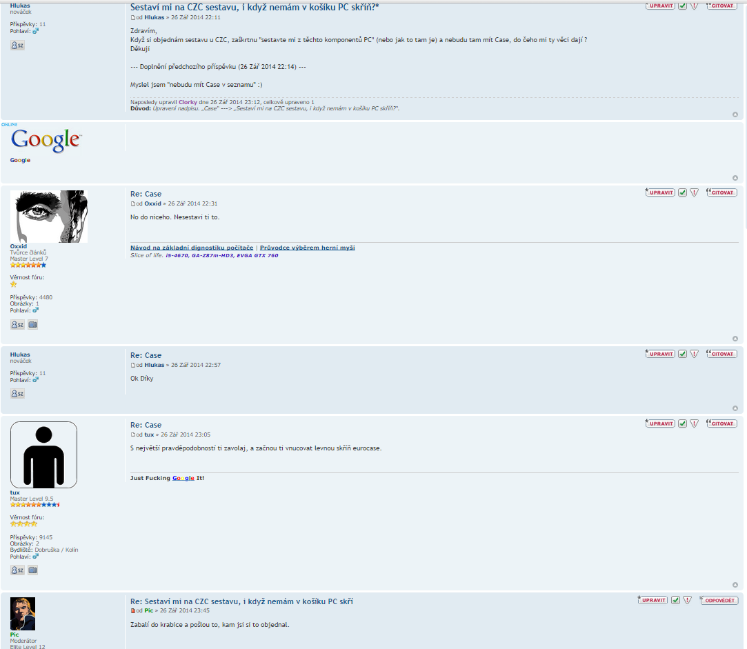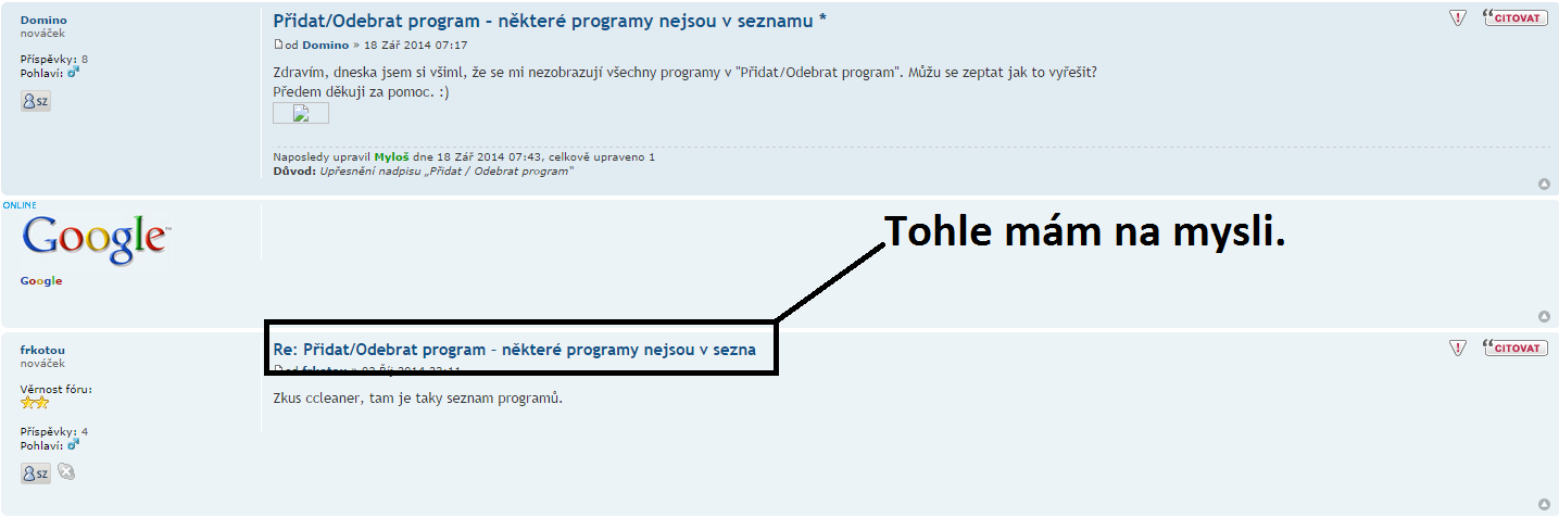 - Nesnažte se řešit jiný problém (i když podobný) v jednom tématu. Raději založte nové téma.
