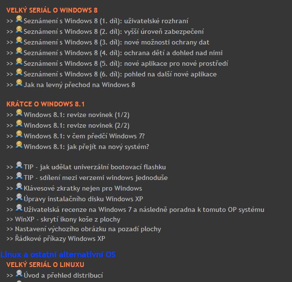 Je to odřádkované, aby se opticky oddělil seriál o Windows 8/8.1 s ostatními články o Windows. Nejde o chybu...