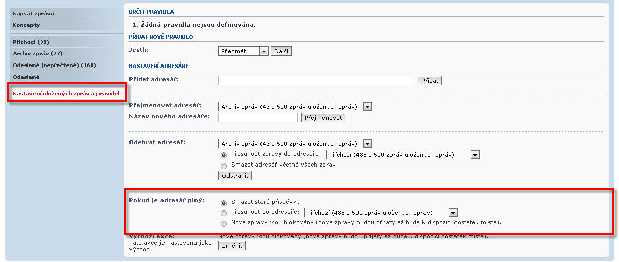 ...komu se složka "Přijatých" rychle zaplní, může si změnit nastavení své schránky, jak se má zachovat - jestli se automaticky zprávy přesunou do archivu a uvolní místo nově příchozím nebo se budou mazat: