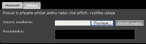 Právě jsem pomocí tlačítka "Procházet" vložil cestu k souboru přílohy. Jak sami vidíte zapsanou cestu tam skoro nevidíte. Poprosil bych pokud jde o tmavý podklad pro bílé písmo v dialogu "Název souboru".