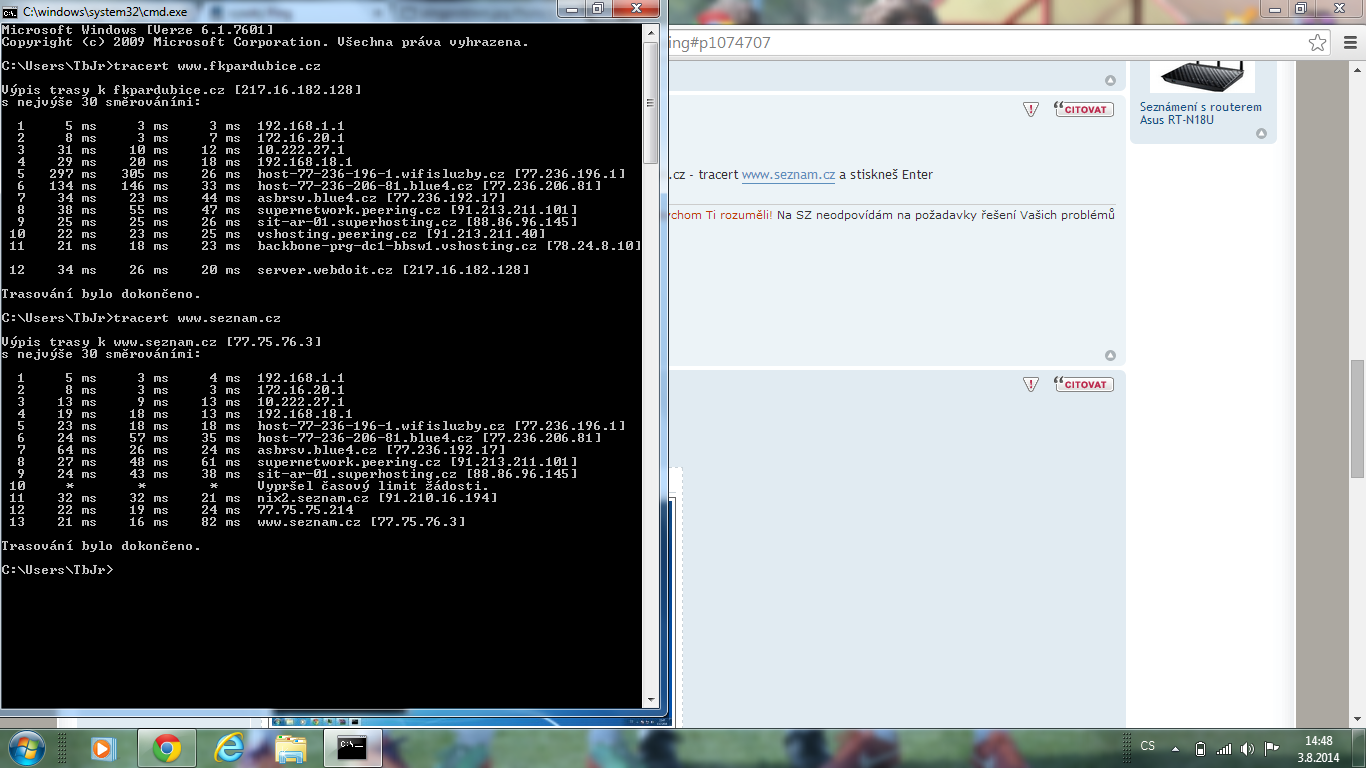 Díky za odpověd a eště se chci zeptat proč se na jiném ntb (starším nameřila hodnota 3,1 mbp/s a ping 20) je to tím že neměla v porhližeči žádné stránky otevřené