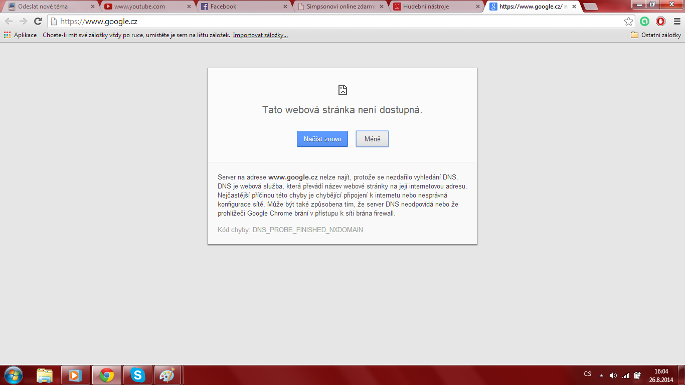 Nefunguje Google,Youtube,Facebook,League of Legends