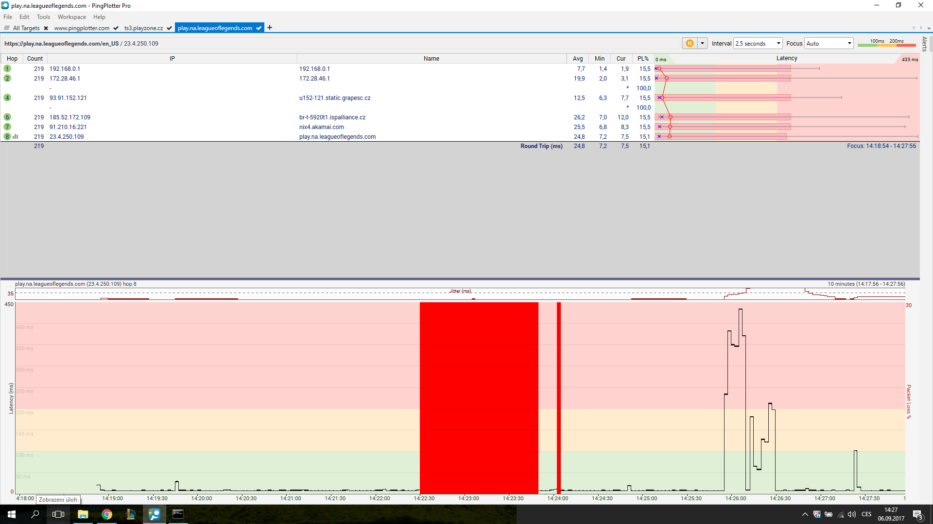 Dodej prosím aspoň ten PingPlotter, ať máme potvrzeno, že k problému dochází opravdu kvůli WiFi.