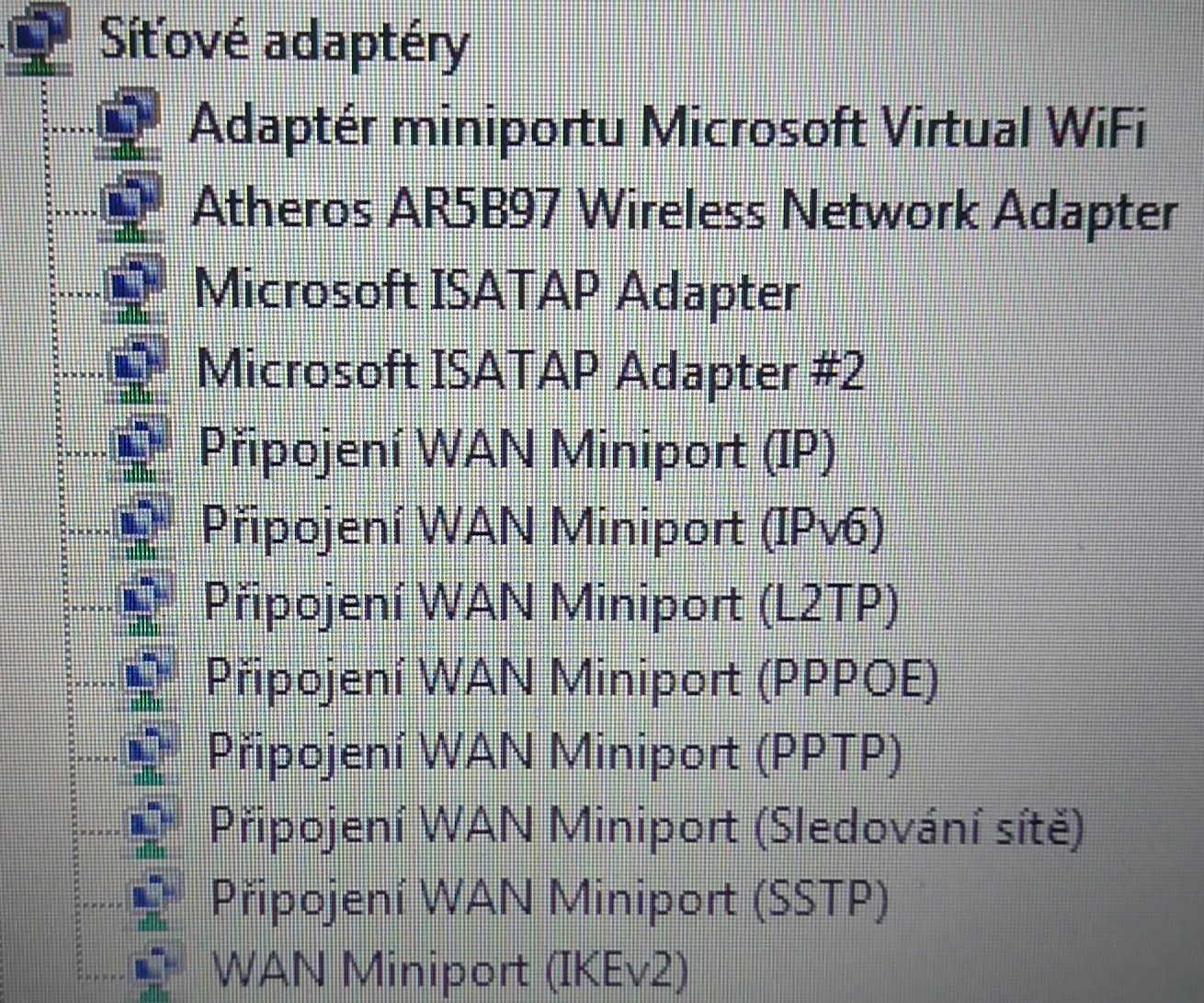 Tak posílám obrázek těch Síťových adaptérů, jak jsou ve správci zařízení..