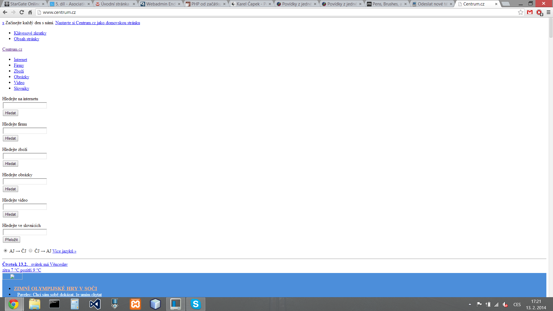 Ahoj v poslední době se mi (mě to nevadí ale otec tam má mail tak je to trochu problém) blbě zobrazuje stránka centrum.cz - viz. obrázek. Ptal jsem se pár lidí a těm to jde v pořádku, a jak na stolním tak i na notebook to nejde - jsou na internet připojený přes router... Nevíte čím by to mohlo být ?